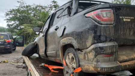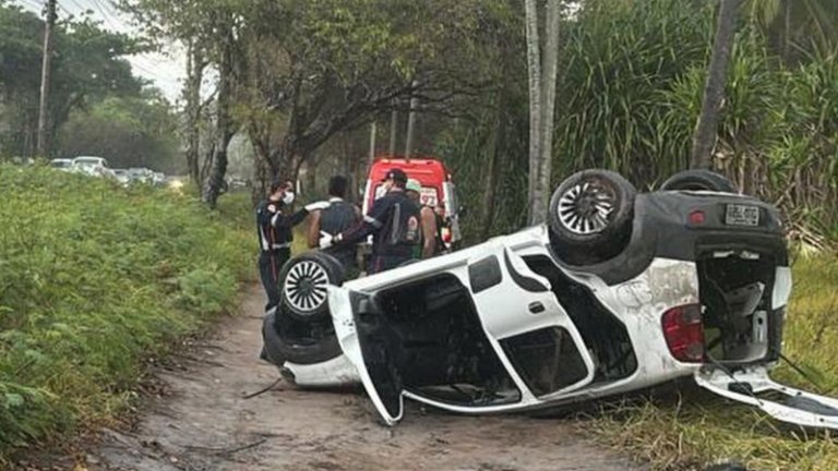 Um veículo capotou na Avenida Beira Mar, em Taperapuã, trecho bastante movimentado da Orla Norte…