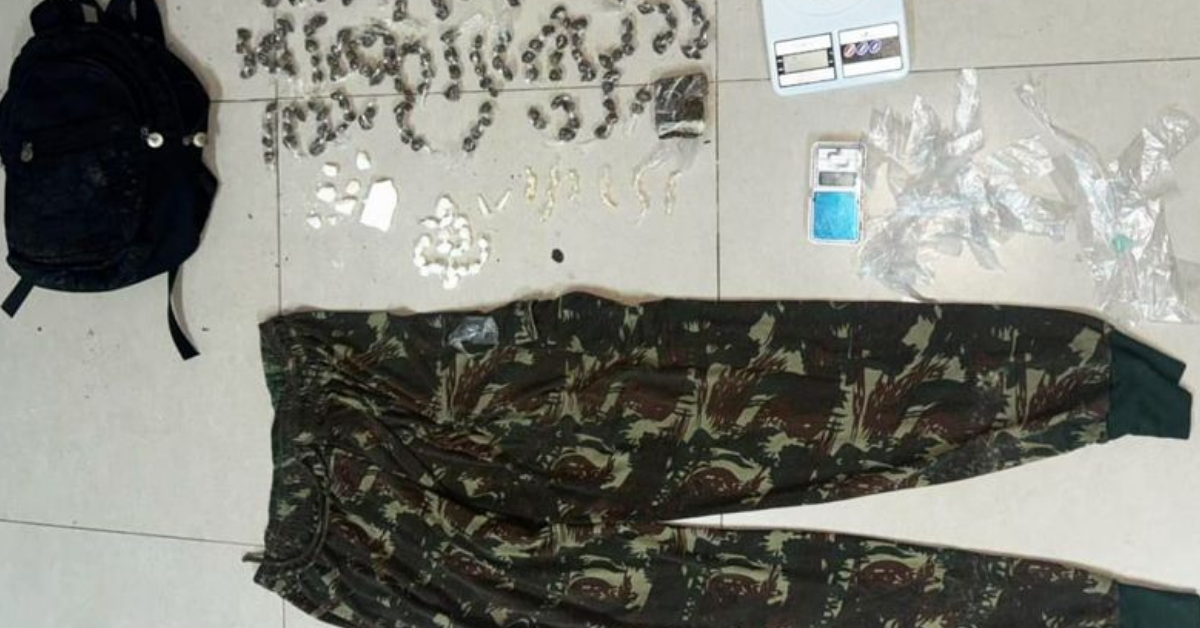 Dentro do material recolhido, foram encontrados celulares, anotações e uma quantidade expressiva de entorpecentes já fracionados para comercialização.