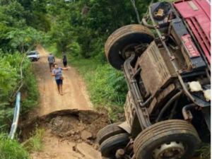 Um caminhão despencou de uma ponte, nesta sexta-feira (9/2) na estrada que conecta Itarantim à região rural do Corgão e Palmeira. gerando preocupações sobre a segurança viária na área. De acordo com relatos, a ponte já estava interditada para veículos de grande porte, como caminhões, devido à sua condição deteriorada.