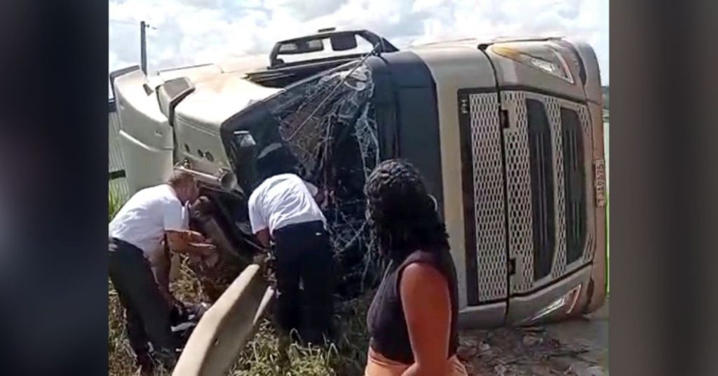 Um acidente envolvendo o transporte de carga viva causou prejuízos e mobilizou equipes de resgate, nas proximidades do distrito de Mundo Novo, em Eunápolis. O veículo, que transportava dezenas de bovinos com destino à região, capotou em uma curva sinuosa na altura do quilômetro 18 da rodovia federal. O condutor da carreta, que havia partido de Itagimirim, saiu ileso do incidente, relatando às autoridades que não conseguiu manter o controle do caminhão ao passar pelo trecho.