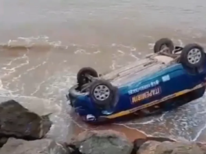 Aluna de autoescola perde o controle do veículo e carro vai para na areia da praia