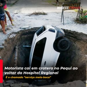 Carro cai em cratera no pequi – “Serviço meia-boca”