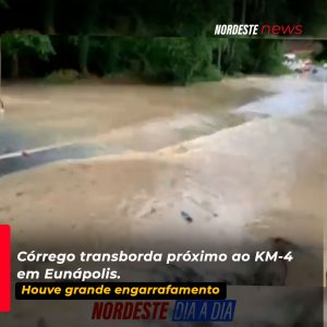 Córrego transborda próximo ao KM-4 na BR-367 e causa engarrafamento