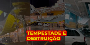Fortes chuvas causam alagamentos, derrubam árvores e até danificam estrutura de supermercado