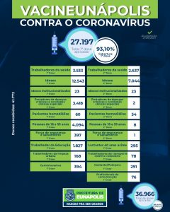 Notícias VACINEUNÁPOLIS: 36.966 doses de vacina contra a Covid-19 foram aplicadas até 21/06 Há 5 anos atrás