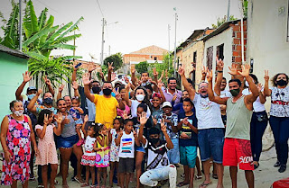 Convidada pelo candidato a vereador Walas Torres (REPU) e pelo ex-vereador Normando Torres, Cordélia visita a rua da Paz no bairro Juca Rosa.