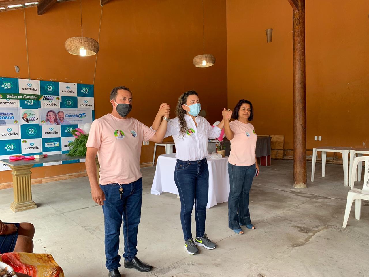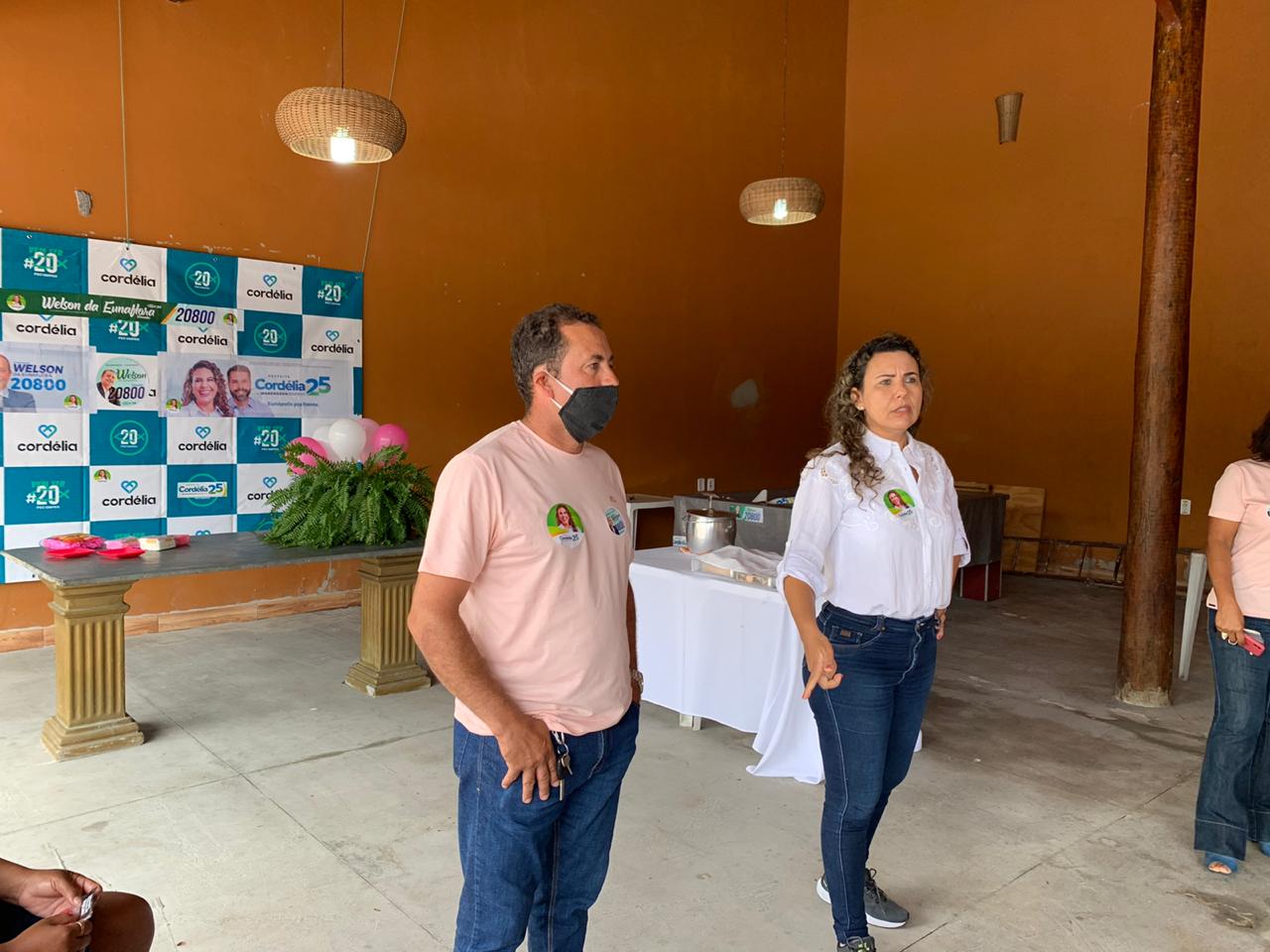 A candidata a prefeita Cordélia (DEM) esteve nesta segunda-feira, 12/10, no espaço da Eunaflora, no bairro Sapucaeira, a convite do candidato a vereador Welson da Eunaflora (PSC).