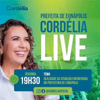 Em live programada para esta segunda feira, 11/1, a prefeita de Eunápolis, Cordélia Torres, vai abrir a “caixa preta” do governo do seu antecessor Robério Oliveira.