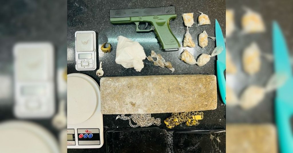 No local da ocorrência, os policiais encontraram aproximadamente um quilo de maconha, cerca de 200 gramas de cocaína e diversas porções de crack, todas já embaladas e prontas para a comercialização. Além dos entorpecentes, a equipe apreendeu balanças de precisão e um simulacro de pistola, evidenciando a estrutura montada para o tráfico.