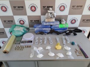 Em uma busca intensiva nas proximidades, os PMs localizaram um revólver calibre 32 e dois revólveres calibre 22, além de 8,5kg de maconha em tabletes, 10 sacos contendo cocaína, 72 porções de maconha e vários outros materiais relacionados à atividade criminosa.