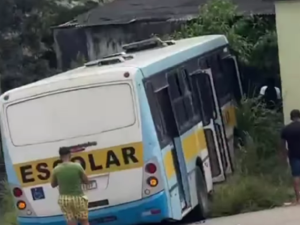 Um ônibus escolar saiu da pista e foi parar em um terreno baldio no bairro…