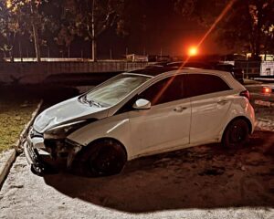 Durante a perseguição, o condutor perdeu o controle do carro, colidindo com o meio-fio. Após o impacto, os ocupantes desembarcaram rapidamente e fugiram em direção a uma área de mata, dificultando a captura.
