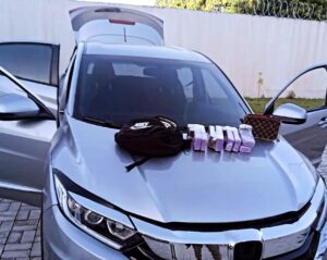 Ao revistar o carro, os policiais encontraram oito porções grandes e três porções médias de maconha. Todo o material foi compreendido e encaminhado à delegacia, onde as medidas legais serão tomadas. Nenhuma suspeito foi preso. A polícia segue investigando o caso para identificar e localizar os responsáveis.