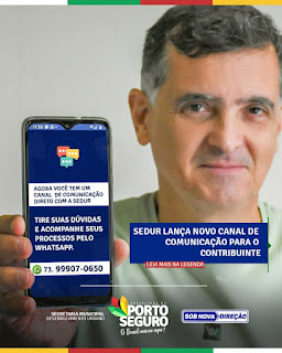 A Secretaria de Desenvolvimento Urbano da Prefeitura de Porto Seguro lançou um novo canal de comunicação para facilitar a vida dos contribuintes e pessoas que necessitem de informações.