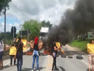 O grupo fechou parte da rodovia com pneus queimados. De acordo com a Polícia Rodoviária Federal (PRF), o protesto aconteceu no trevo que liga a BR-101 com a BR-367.
