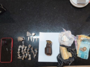Por volta das 6h, os policiais se deslocaram ao local indicado, onde avistaram o suspeito. Ele tentou fugir ao perceber a presença policial, mas foi interceptado. Durante a abordagem, foi encontrada uma mochila contendo um artefato explosivo do tipo granada e diversas substâncias entorpecentes.