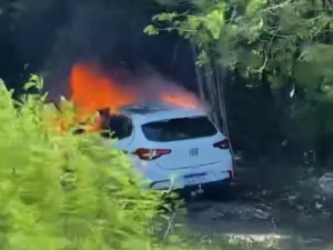 Carro é destruído por incêndio nas margens da BR-367 em frente à rodoviária