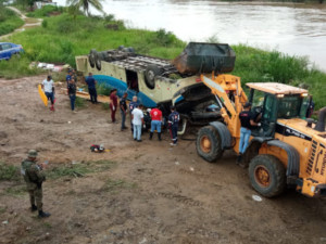 Ônibus da Viação Novo Horizonte capota da ponte do Rio Pardo