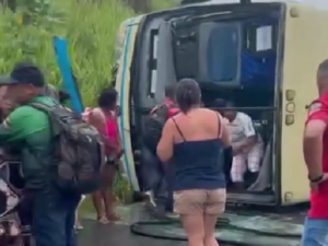 Ônibus da empresa Novo Horizonte tomba após falha nos freios