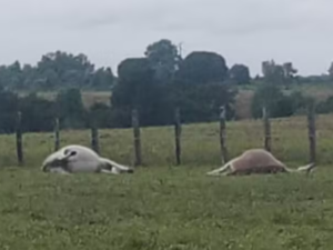 Segundo informações divulgadas pela prefeitura municipal, duas jumentas grávidas e um reprodutor estavam pastando quando foram atingidas pelo incidente.
